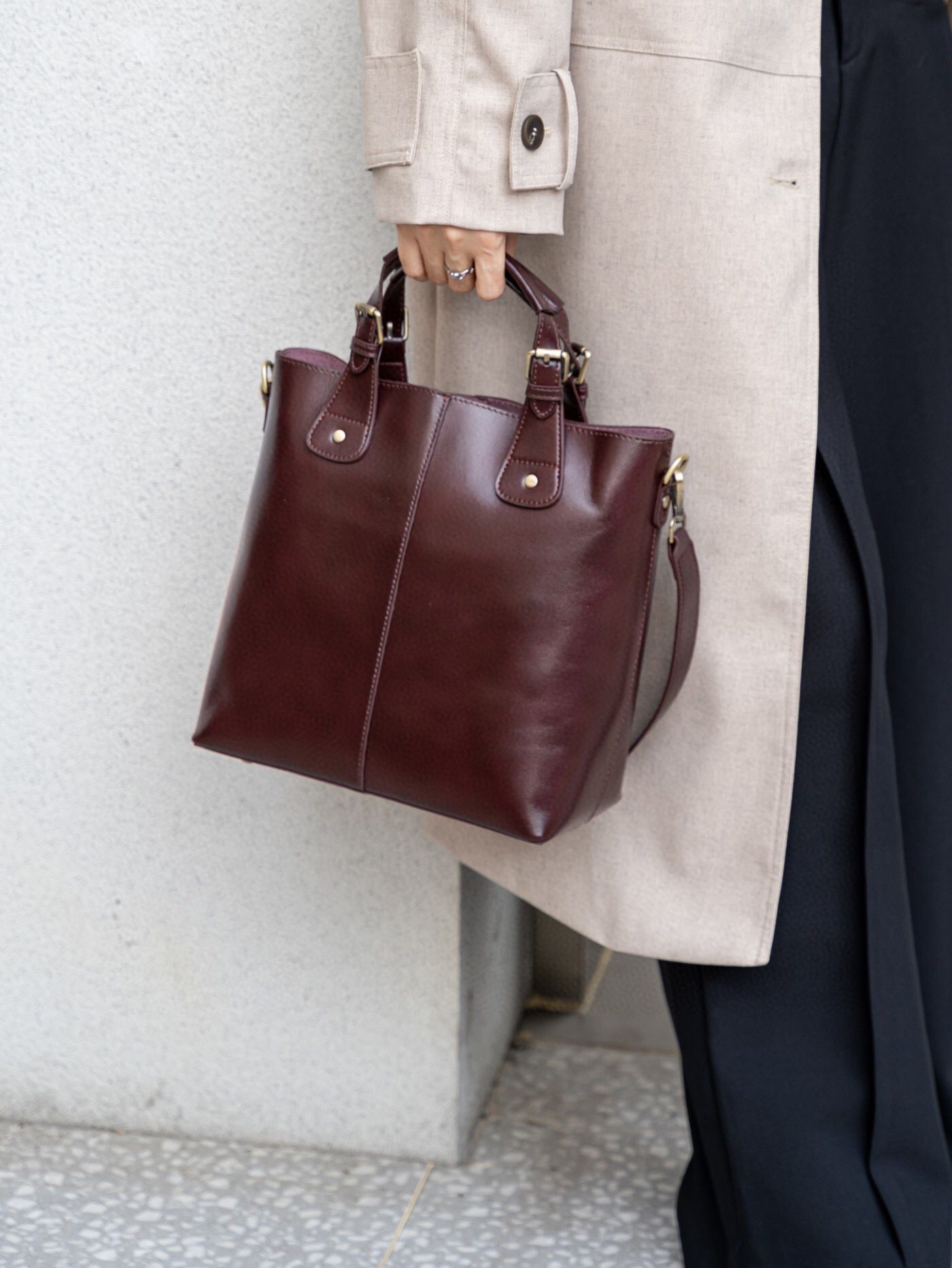 Защитные металлические ножки сумки предотвращают попадание влаги и грязи на покрытие дна. Сумка имеет жесткую конструкцию и оснащена молнией для надежного закрытия.