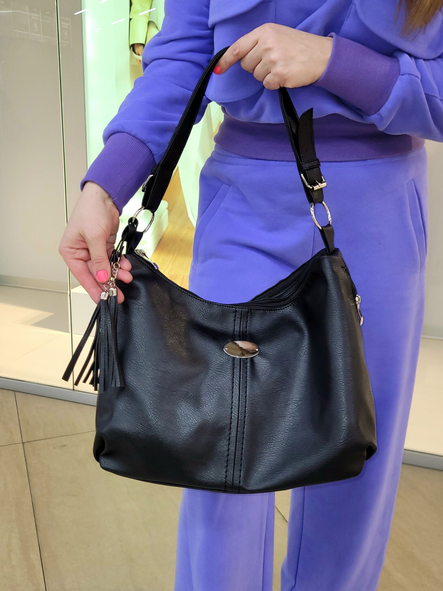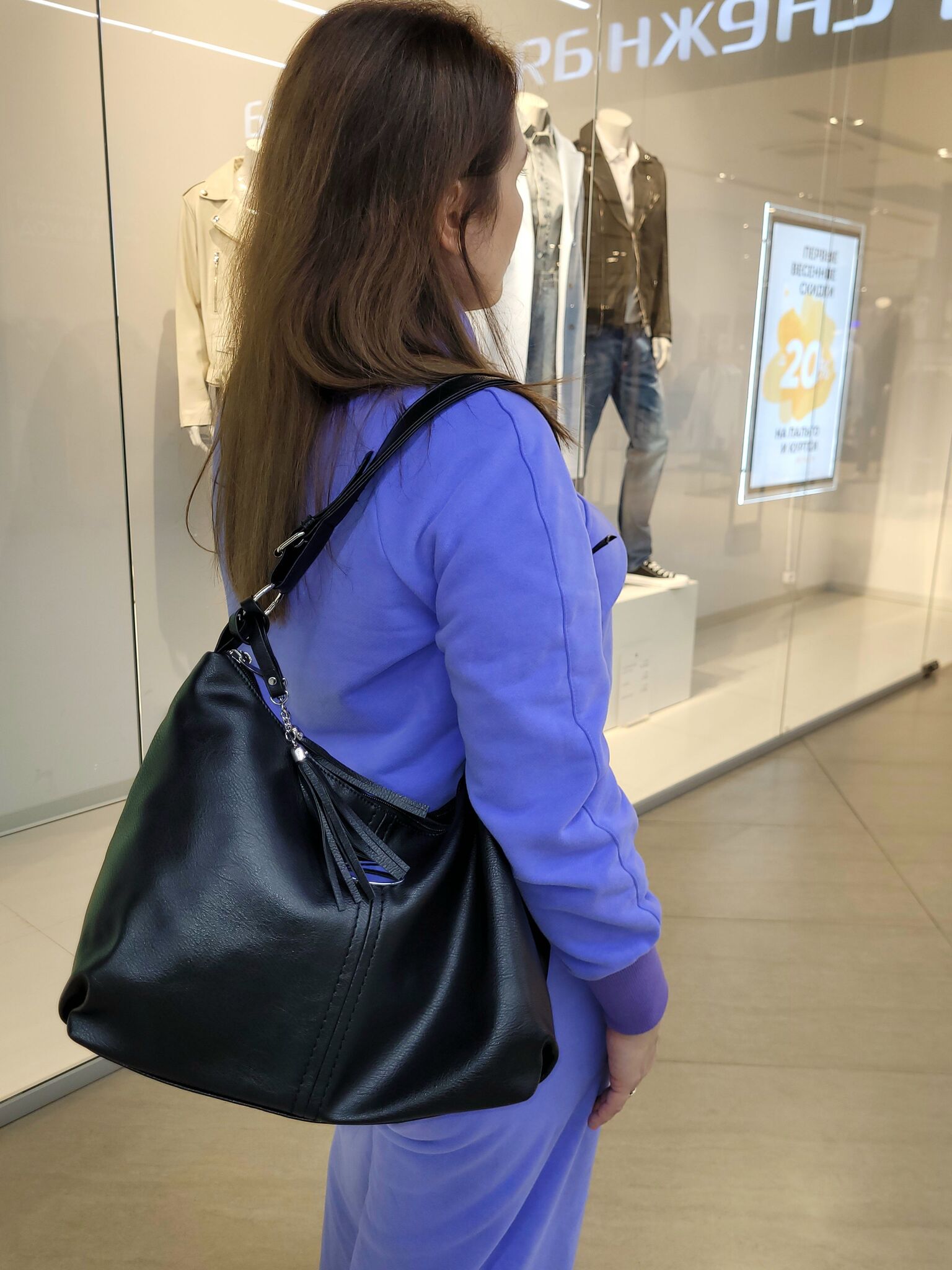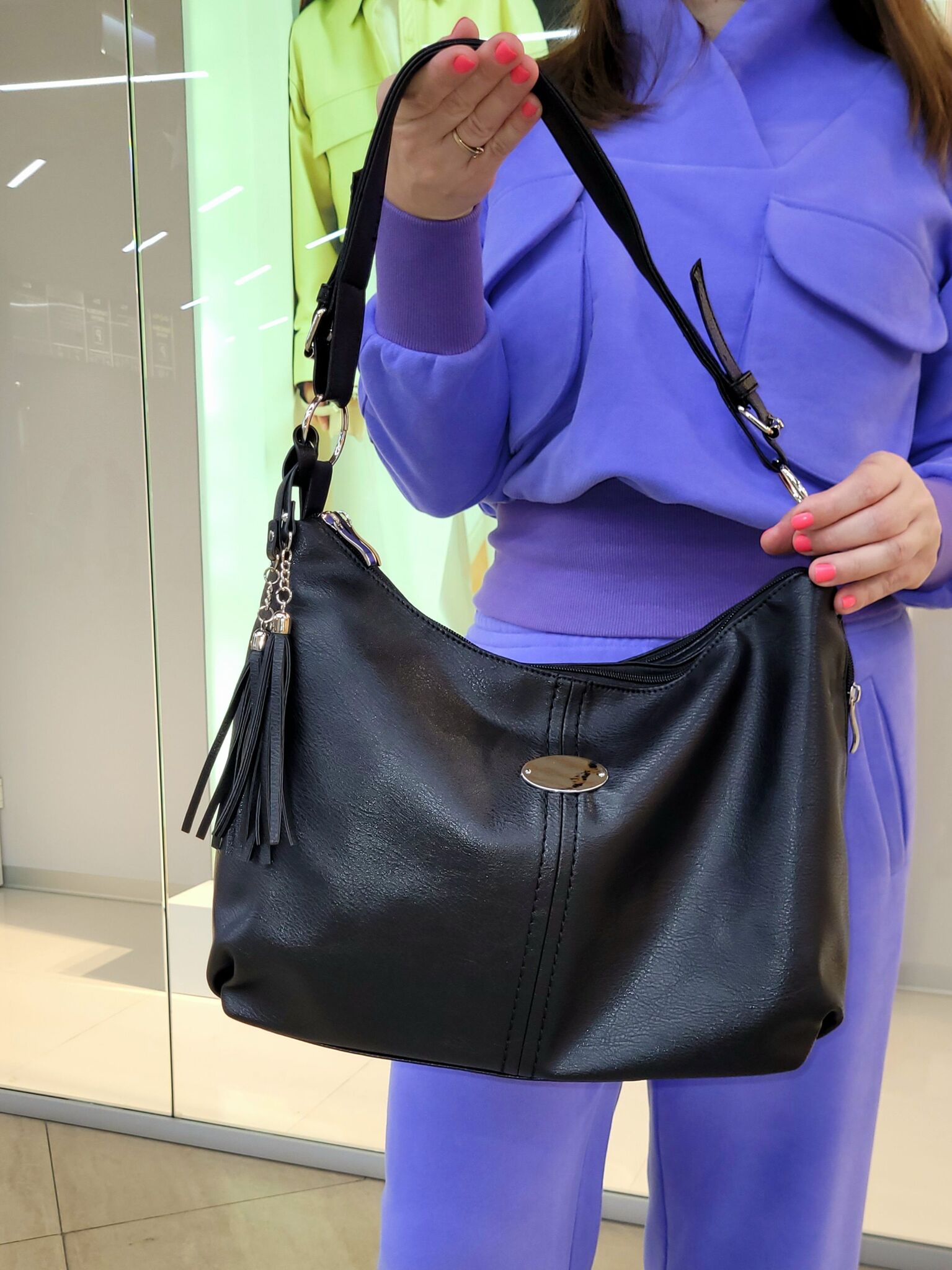 Кожаная сумка тоут в классическом стиле станет базовым элементом любого вашего образа. Ее можно сочетать с любой одеждой и аксессуарами - средний размер, однотонная расцветка и стильный дизайн делают ее идеальным выбором для повседневного использования. Женская сумка изготовлена из искусственной кожи. Это мягкий и эластичный материал, который хорошо выдерживает воздействие высоких и низких температур (тоут можно носить даже зимой), а также не образует заломов и не трескается. Надежная фурнитура прослужит вам долгое время - молнии и замки устойчивы к коррозии и выдержат активное ежедневное использование. Дамская сумка оснащена вместительным отделением, в котором вы можете носить документы и офисные бумаги формата А4, учебники и тетради для учебы в школе и университете. В двух внутренних боковых отделах с быстрым доступом можно разместить гаджеты и другие вещи. Носить молодежный тоут можно через плечо (плечевой ремень идет в комплекте) или в руках - крепкие ручки спокойно выдержат большой вес. Защитные металлические ножки изделия уберегут покрытие дна от влаги и грязи. Сумка-тоут для взрослых женщин и подростков представлена в красивой черной расцветке - универсальный вариант под любые наряды!