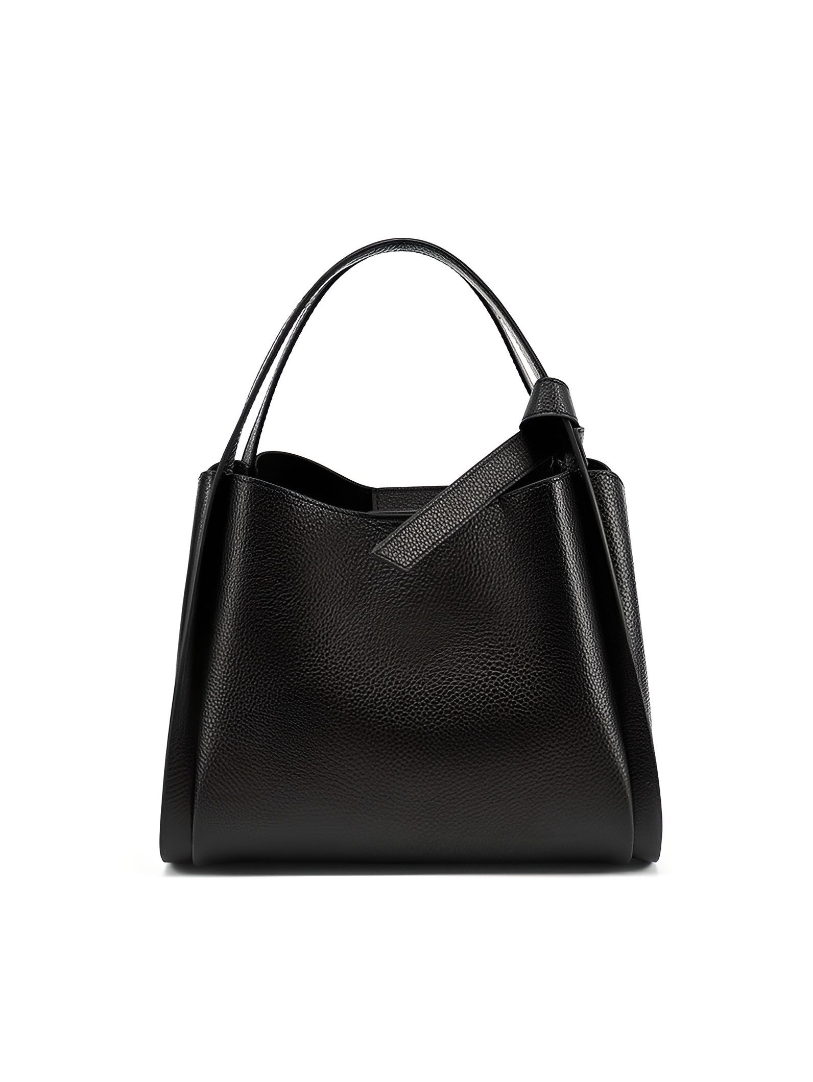 Застежка сумки - затягивающийся шнурок, который обеспечивает удобство и быстроту закрытия/открытия сумки. Ручки сумки - на плечо, что позволяет носить ее без переноски на руках. Длина плечевого ремня составляет 112 см, что обеспечивает комфорт при ношении сумки.