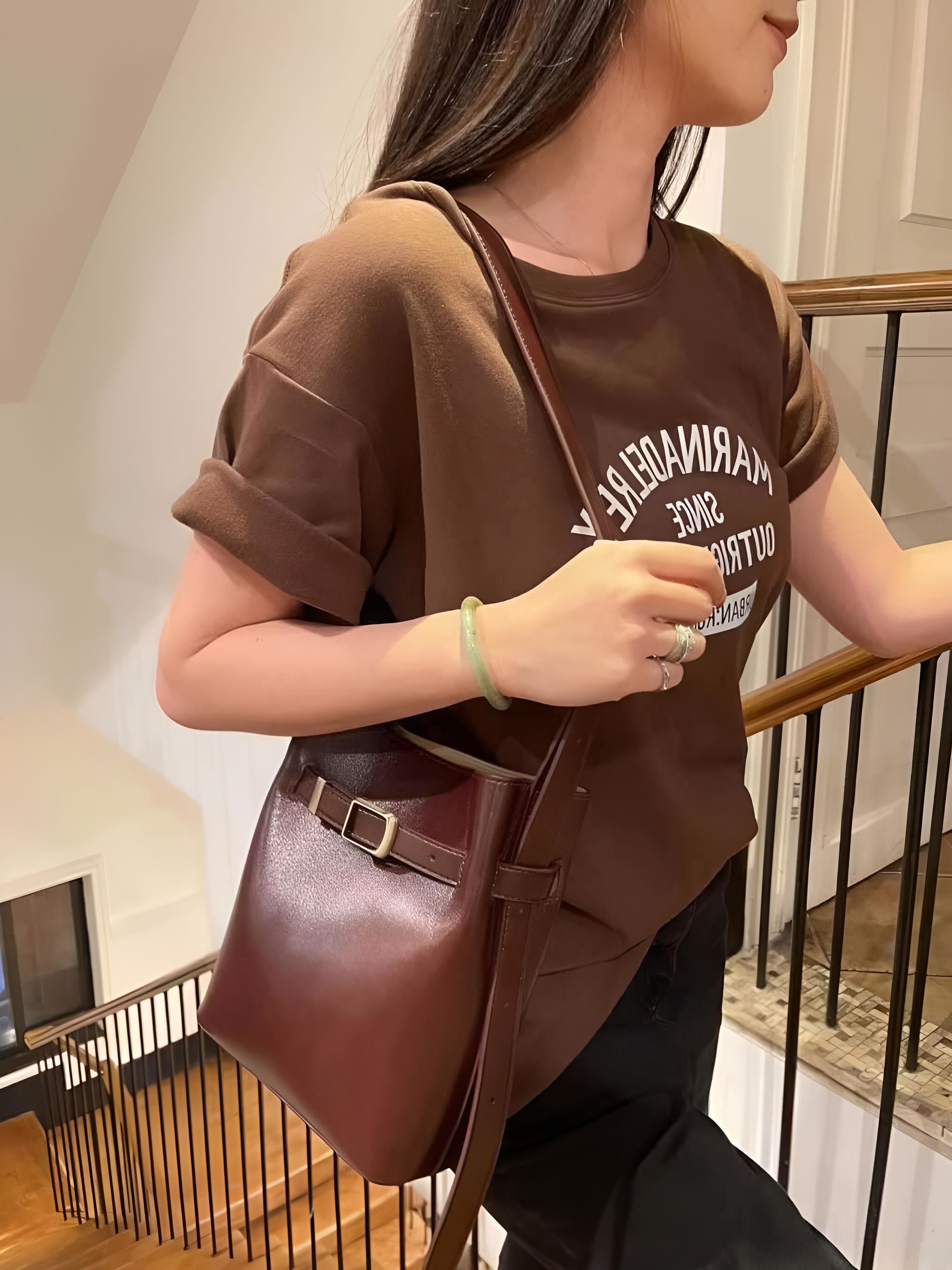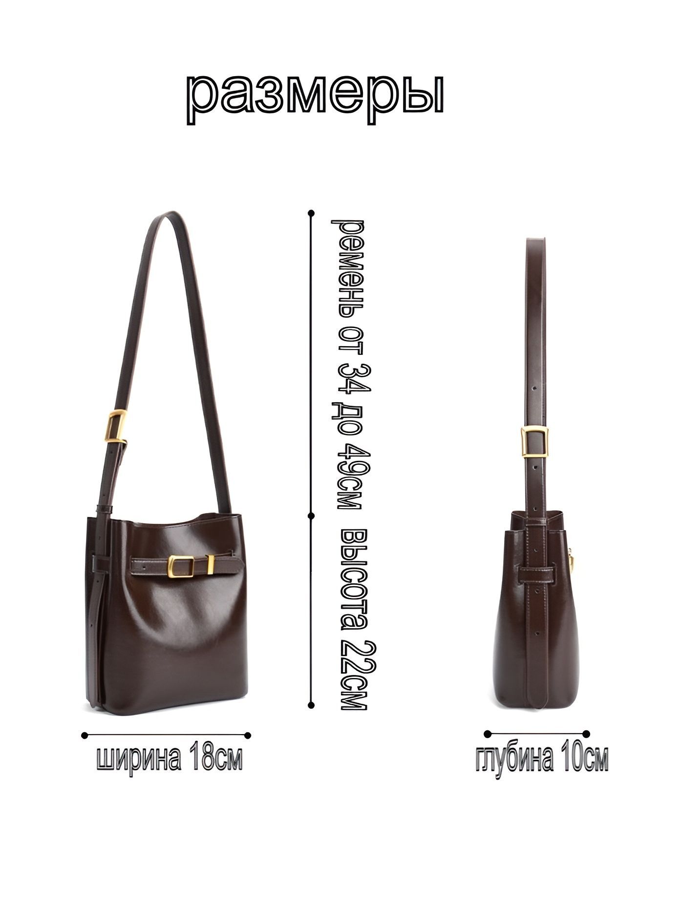 Сумка выполнена из высококачественной натуральной кожи, что гарантирует долговечность и стильный внешний вид. Подкладка из текстиля обеспечивает мягкость и комфорт при использовании.