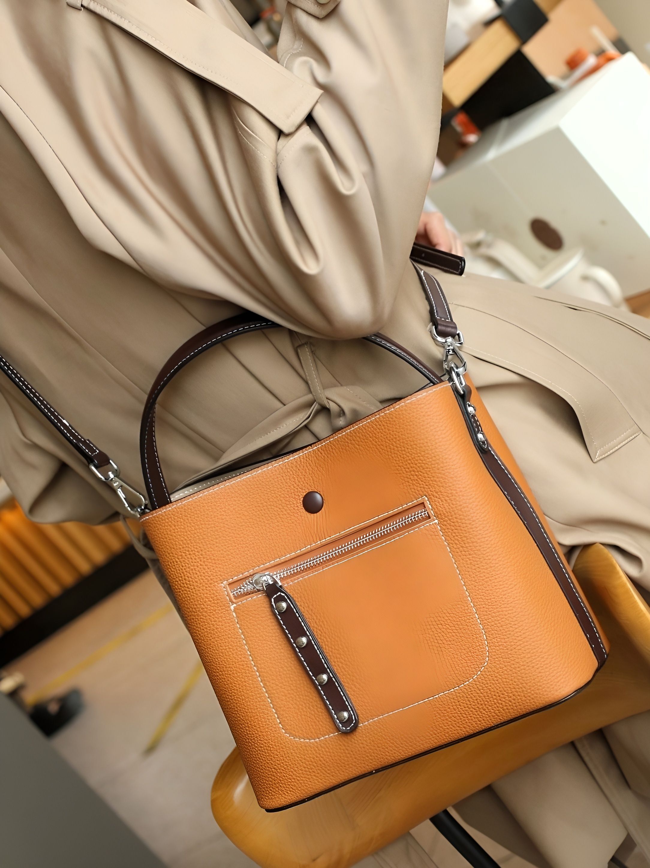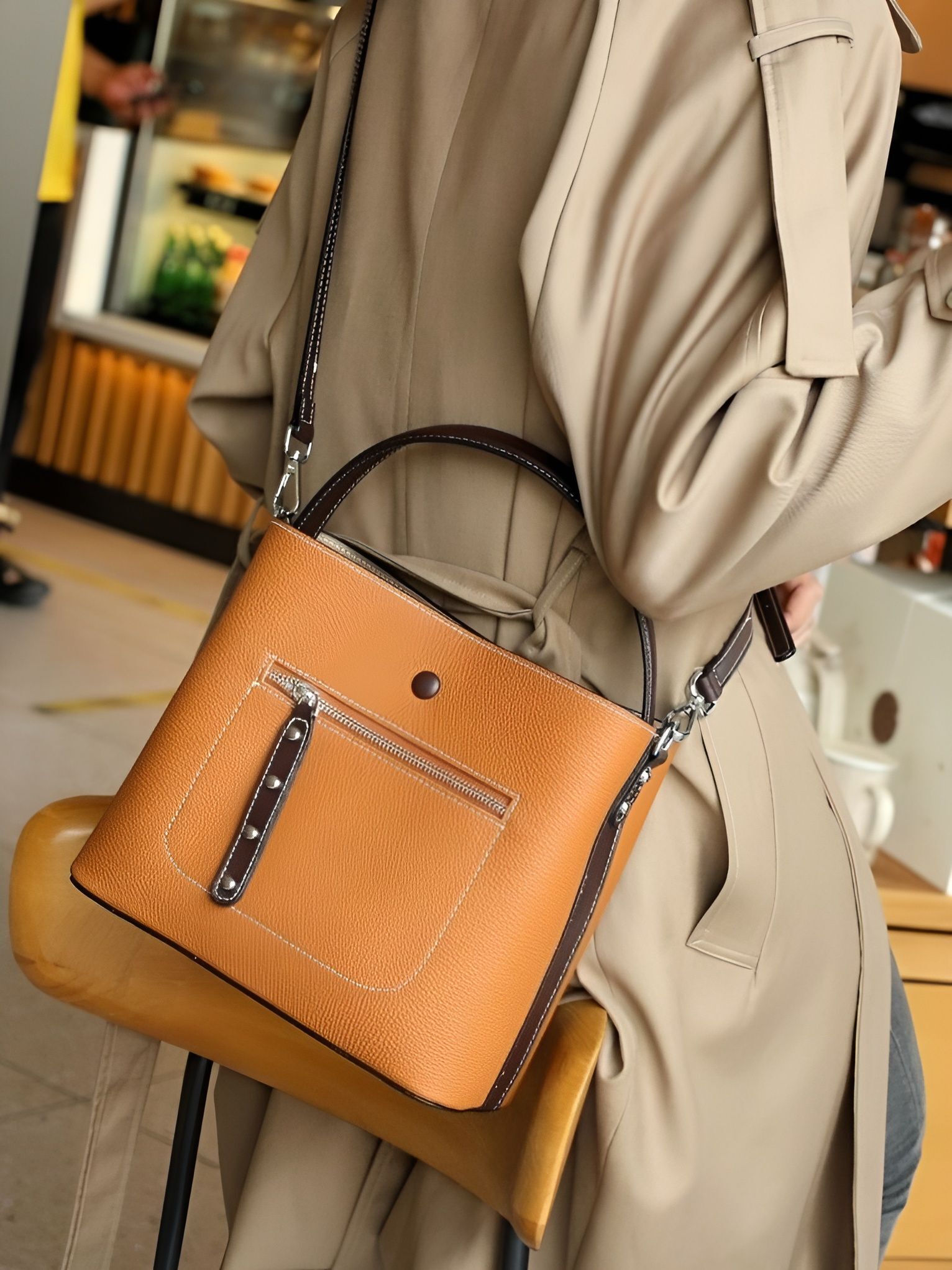 Женская сумка на плечо из натуральной кожи сочетает элегантность и практичность. Теплый рыжий оттенок дополняет любой образ, а водоотталкивающая пропитка обеспечивает защиту от непогоды.